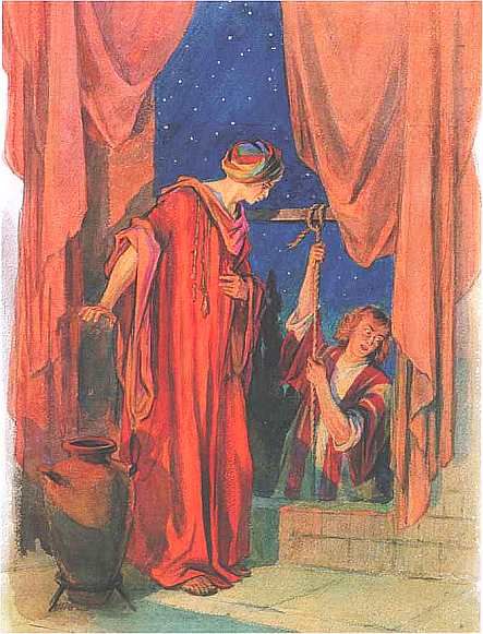 11-17ст. «И послал Саул слуг в дом к Давиду, чтобы стеречь его и убить его до утра. И сказала Давиду Мелхола, жена его: если ты не спасешь души твоей в эту ночь, то завтра будешь убит. И спустила Мелхола Давида из окна, и он пошел, и убежал и спасся. Мелхола же взяла статую и положила на постель, а в изголовье ее положила козью кожу, и покрыла одеждою. И послал Саул слуг, чтобы взять Давида; но [Мелхола] сказала: он болен. И послал Саул слуг, чтобы осмотреть Давида, говоря: принесите его ко мне на постели, чтоб убить его. И пришли слуги, и вот, на постели статуя, а в изголовье ее козья кожа. Тогда Саул сказал Мелхоле: для чего ты так обманула меня и отпустила врага моего, чтоб он убежал? И сказала Мелхола Саулу: он сказал мне: отпусти меня, иначе я убью тебя» (1Цар.19:11-17).