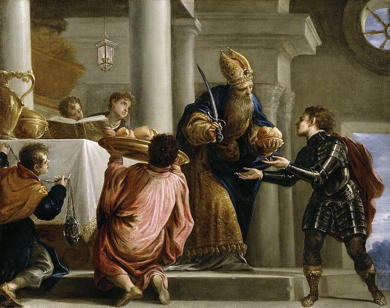 К сожалению, а скорее всего, по провидению Божьему, у священника ничего из еды не оказалось, кроме хлебов предложения, которые лежали в святилище по закону Моисея. Вот что говорится об этих хлебах: «И возьми пшеничной муки и испеки из нее двенадцать хлебов; в каждом хлебе должны быть две десятых [ефы]; и положи их в два ряда, по шести в ряд, на чистом столе пред Господом; и положи на [каждый] ряд чистого ливана [и соли], и будет это при хлебе, в память, в жертву Господу; в каждый день субботы постоянно должно полагать их пред Господом от сынов Израилевых: это завет вечный; они будут принадлежать Аарону и сынам его, которые будут есть их на святом месте, ибо это великая святыня для них из жертв Господних: [это] постановление вечное» (Лв.24:5-9).