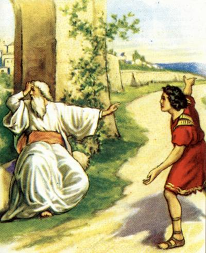 12-18ст. «И побежал один Вениамитянин с места сражения и пришел в Силом в тот же день; одежда на нем была разодрана и прах на голове его. Когда пришел он, Илий сидел на седалище при дороге у ворот и смотрел, ибо сердце его трепетало за ковчег Божий. И когда человек тот пришел и объявил в городе, то громко восстенал весь город. И услышал Илий звуки вопля и сказал: отчего такой шум? И тотчас подошел человек тот и объявил Илию. Илий был тогда девяноста восьми лет; и глаза его померкли, и он не мог видеть. И сказал тот человек Илию: я пришел из стана, сегодня же бежал я с места сражения. И сказал [Илий]: что произошло, сын мой? И отвечал вестник и сказал: побежал Израиль пред Филистимлянами, и поражение великое произошло в народе, и оба сына твои, Офни и Финеес, умерли, и ковчег Божий взят. Когда упомянул он о ковчеге Божием, [Илий] упал с седалища навзничь у ворот, сломал себе хребет и умер; ибо он [был] стар и тяжел. Был же он судьею Израиля сорок лет» (1Цар.4:12-18).
