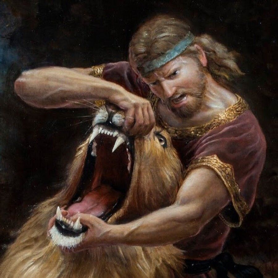 5-7ст. «И пошел Самсон с отцом своим и с матерью своею в Фимнафу, и когда подходили к виноградникам Фимнафским, вот, молодой лев рыкая [идет] навстречу ему. И сошел на него Дух Господень, и он растерзал [льва] как козленка; а в руке у него ничего не было. И не сказал отцу своему и матери своей, что он сделал. И пришел и поговорил с женщиною, и она понравилась Самсону» (Суд.14:5-7).
