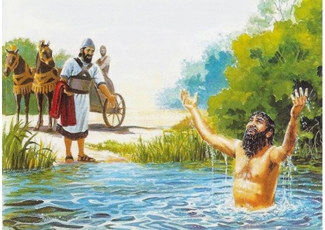 14-16ст. «И пошел он и окунулся в Иордане семь раз, по слову человека Божия, и обновилось тело его, как тело малого ребенка, и очистился. И возвратился к человеку Божию он и все сопровождавшие его, и пришел, и стал пред ним, и сказал: вот, я узнал, что на всей земле нет Бога, как только у Израиля; и так прими дар от раба твоего. И сказал он: жив Господь, пред лицем Которого стою! не приму. И тот принуждал его взять, но он не согласился» (4Цар.5:14-16).