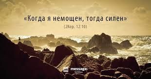 «Посему я благодушествую в немощах, в обидах, в нуждах, в гонениях,в притеснениях за Христа, ибо, когда я немощен, тогда силен» (2Кор.12:10)