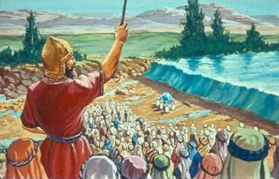 5-8ст. «И сказал Иисус народу: освятитесь, ибо завтра сотворит Господь среди вас чудеса. Священникам же сказал Иисус: возьмите ковчег завета, и идите пред народом. [Священники] взяли ковчег завета, и пошли пред народом. Тогда Господь сказал Иисусу: в сей день Я начну прославлять тебя пред очами всех [сынов] Израиля, дабы они узнали, что как Я был с Моисеем, так буду и с тобою; а ты дай повеление священникам, несущим ковчег завета, и скажи: как только войдете в воды Иордана, остановитесь в Иордане» (Нав.3:5-8).