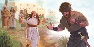 16-22ст. «И сказали старейшины общества: что нам делать с оставшимися [касательно] жен, ибо истреблены женщины у Вениамина? И сказали: наследственная земля пусть остается уцелевшим сынам Вениамина, чтобы не исчезло колено от Израиля; но мы не можем дать им жен из дочерей наших; ибо сыны Израилевы поклялись, говоря: проклят, кто даст жену Вениамину. И сказали: вот, каждый год бывает праздник Господень в Силоме, который на север от Вефиля и на восток от дороги, ведущей от Вефиля в Сихем, и на юг от Левоны. И приказали сынам Вениамина и сказали: подите и засядьте в виноградниках, и смотрите, когда выйдут девицы Силомские плясать в хороводах, тогда выйдите из виноградников и схватите себе каждый жену из девиц Силомских и идите в землю Вениаминову; и когда придут отцы их, или братья их с жалобою к нам, мы скажем им: простите нас за них, ибо мы не взяли для каждого из них жены на войне, и вы не дали им; теперь вы виновны» (Суд.21:16-22).